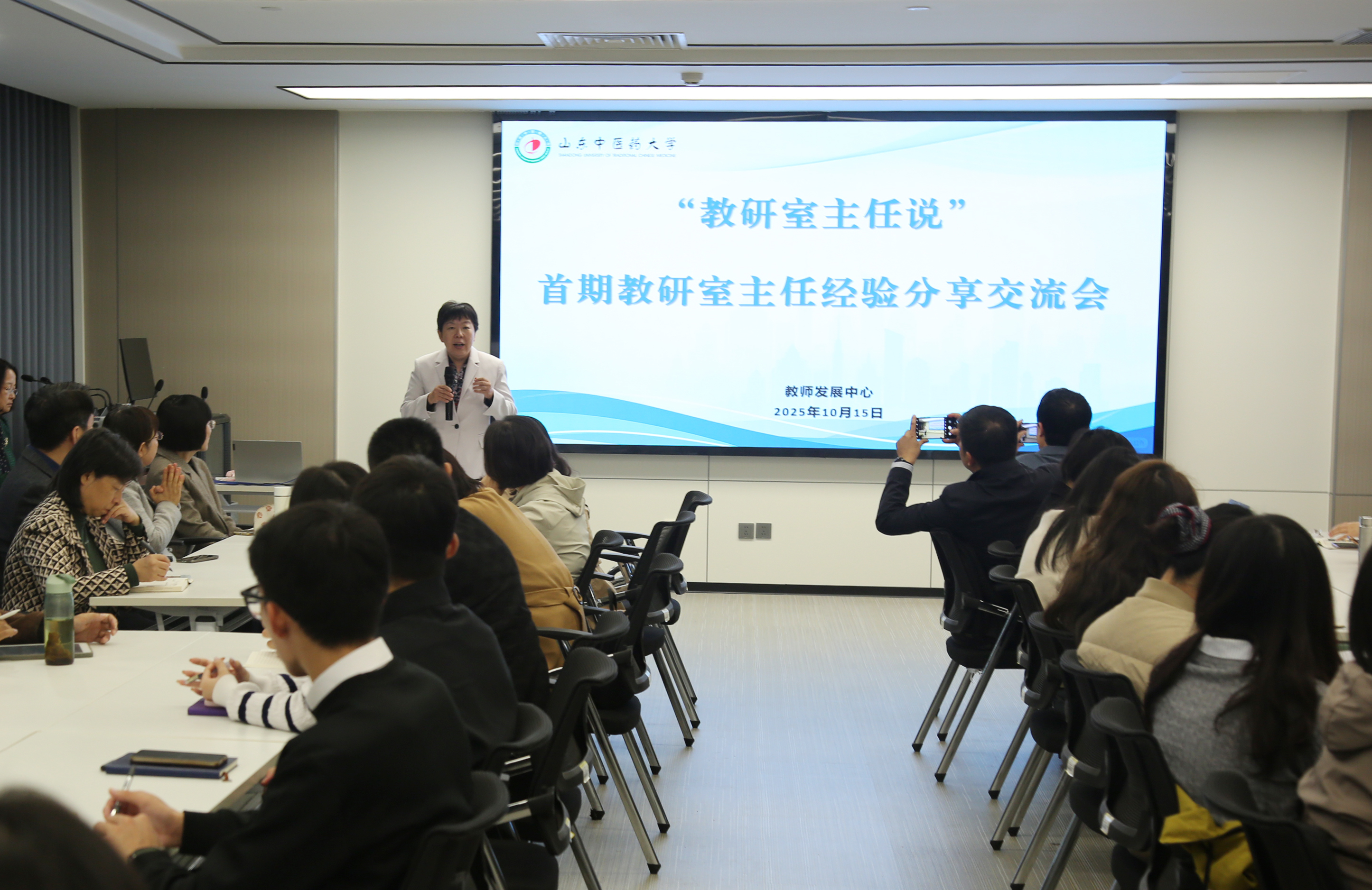 10月15日上午,“教研室主任说”——首期教研室主任经验分享交流会在长清校区东垣楼A301举行。副校长王琳出席并讲话。