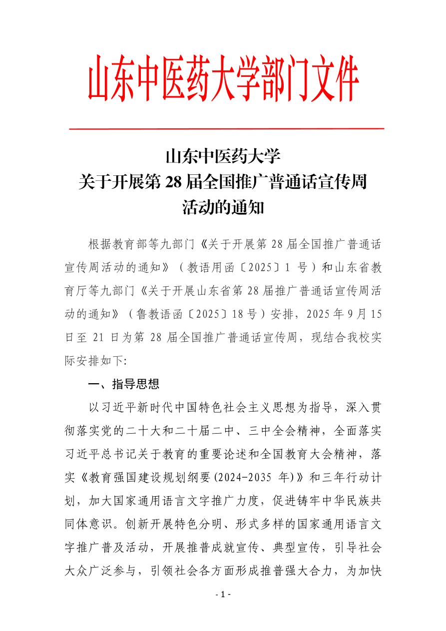 山东中医药大学关于开展第28届全国推广普通话宣传周活动的通知
