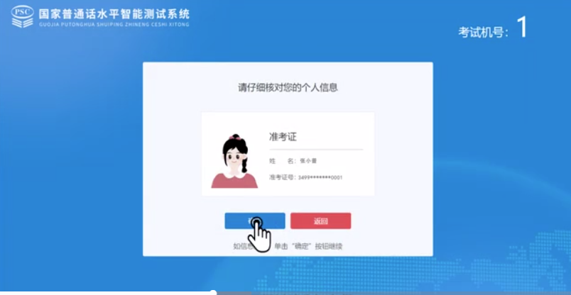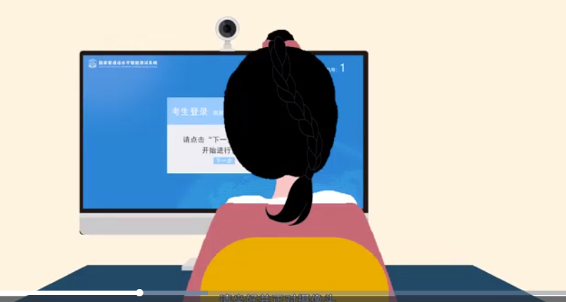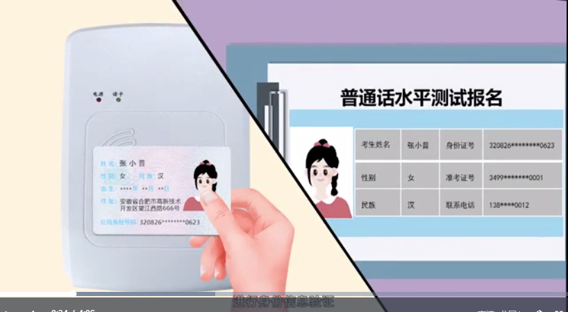 考生坐在指定的位置上采集照片(用于考试验证和采集用于普通话证书上的照片信息)