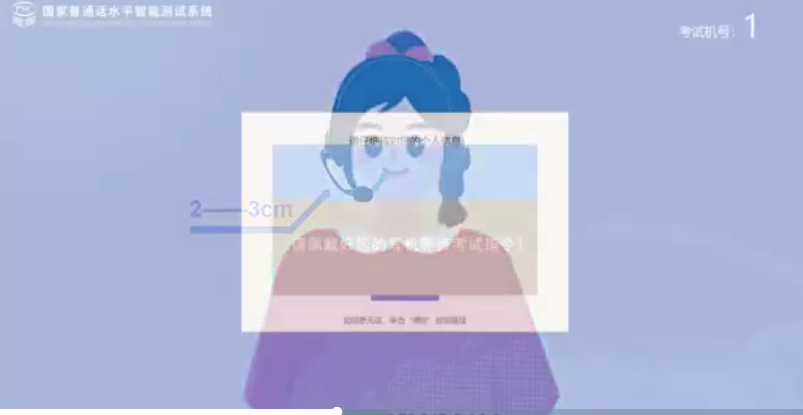 请带上耳麦(本测试站麦克风在左侧),麦克风与嘴的距离2-3公分