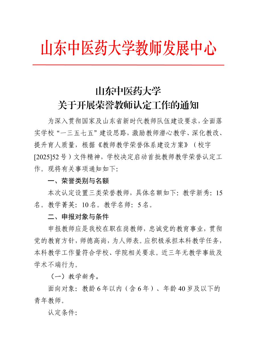 山东中医药大学关于开展荣誉教师认定的通知